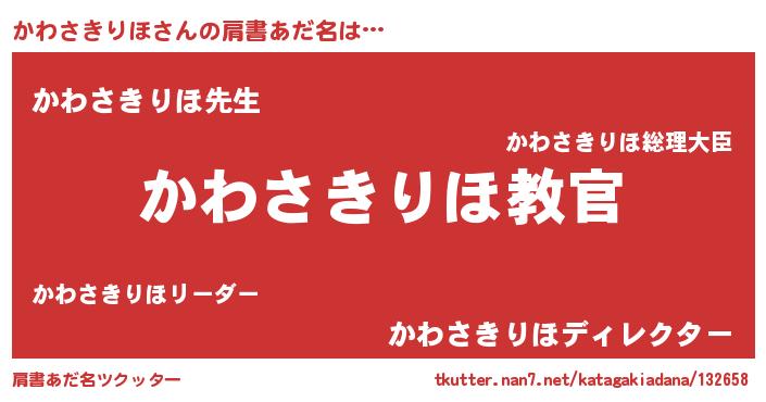| ヒーロー風カッコイイあだ名 | 『仮面カワダー』『ネオカワサキリホ』 |