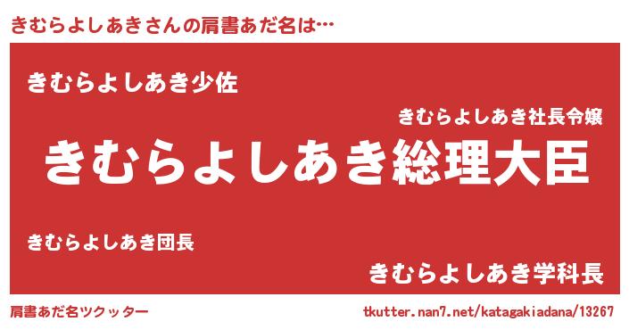 | 男性向けラノベタイトル風あだ名 | 『やはりきむらよしあきの青春ラブコメはまちがっている 』 |