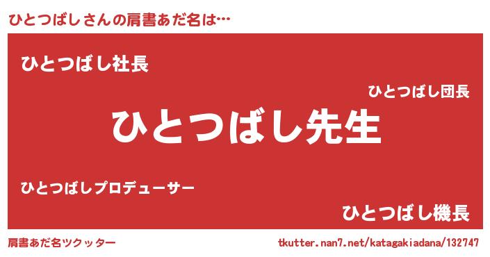 | 男性向けラノベタイトル風あだ名 | 『ひとつばしという概念が存在しない退屈な世界 』 |
