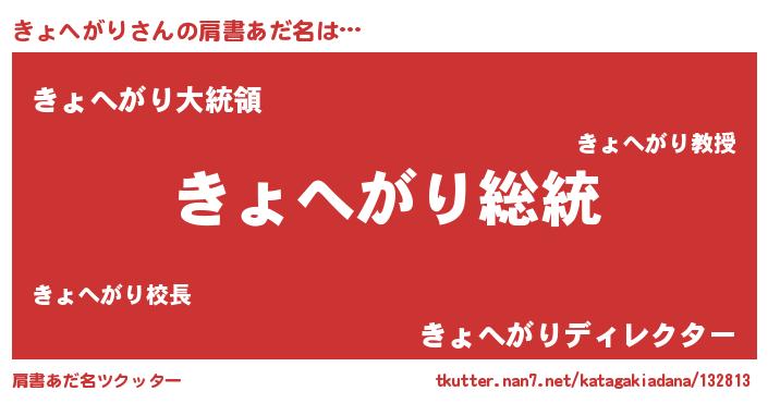 | 意味不明あだ名 | 『自称きょへがり』『永久保存きょへがり』 |