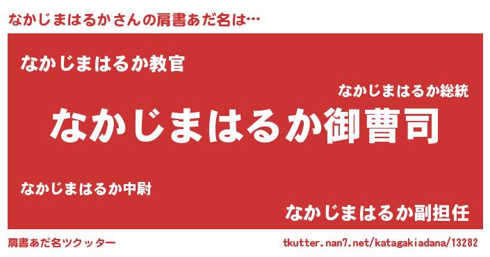 | 男性向けラノベタイトル風あだ名 | 『なかじまはるかの憂鬱』 |