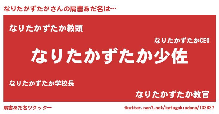 | ヘコむあだ名 | 『なりたかずたか(小並感)』『なりふぇ~』 |