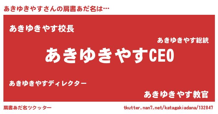| 男性向けラノベタイトル風あだ名 | 『アキユキヤスアートオンライン』 |