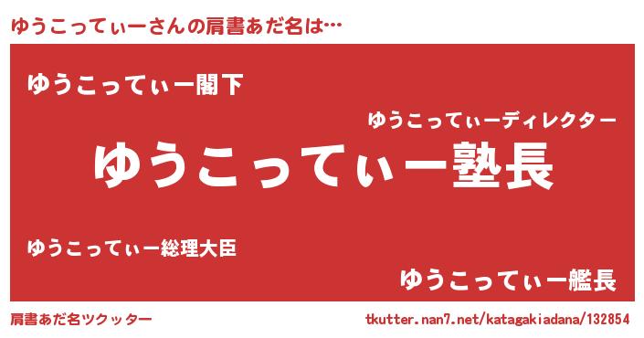 | ポケモン風あだ名 | 『ヒユウコッティー』『ユウセウス』 |
