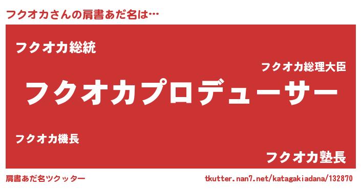| 意味不明あだ名 | 『自称フクオカ』『フクオカフォーエバー』 |