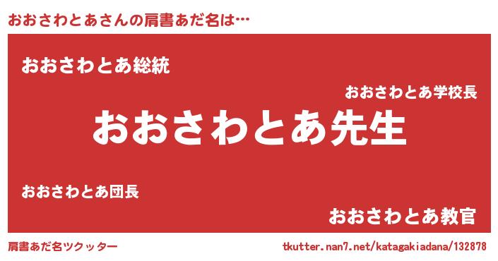 | ヒーロー風カッコイイあだ名 | 『ネオオオサワトア』『仮面オオダー』 |