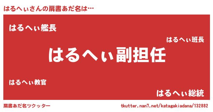 | 意味不明あだ名 | 『永久保存はるへぃ』『自称はるへぃ』 |