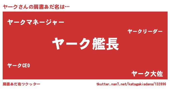| 男性向けラノベタイトル風あだ名 | 『緋弾のヤーク』『ヤークの憂鬱』 |
