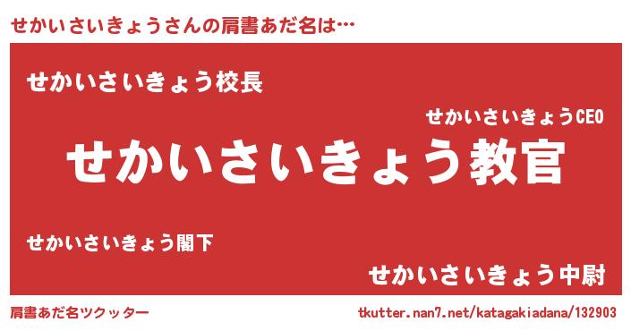 | ポケモン風あだ名 | 『セーカイ』『ゼニセカ』 |