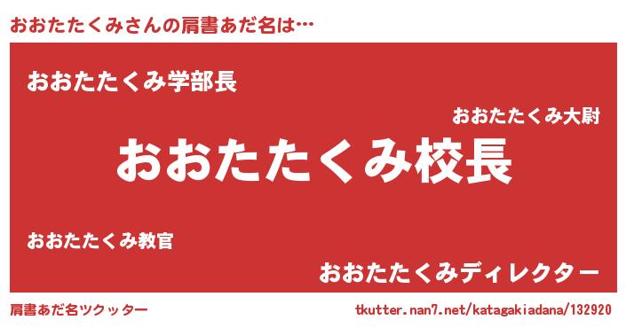 | 男性向けラノベタイトル風あだ名 | 『おおたたくみという概念が存在しない退屈な世界 』 |
