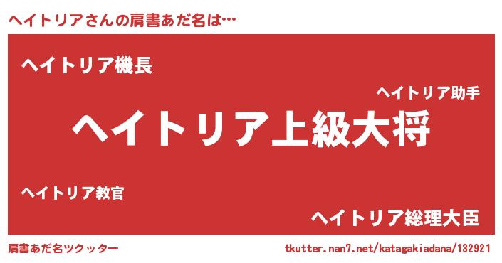 | 欧米人風あだ名 | 『トリンドルヘイトリア』 |