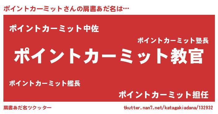 | ヘコむあだ名 | 『ポイントカーミット(遠い目)』『ポイを』 |