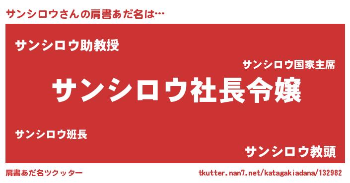 | 女子向けラノベタイトル風あだ名 | 『サンシロウ姫と円卓の騎士』 |