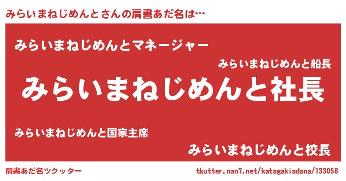 | 伝説のあだ名 | 『封印されし竜騎士みらいまねじめんと』 |