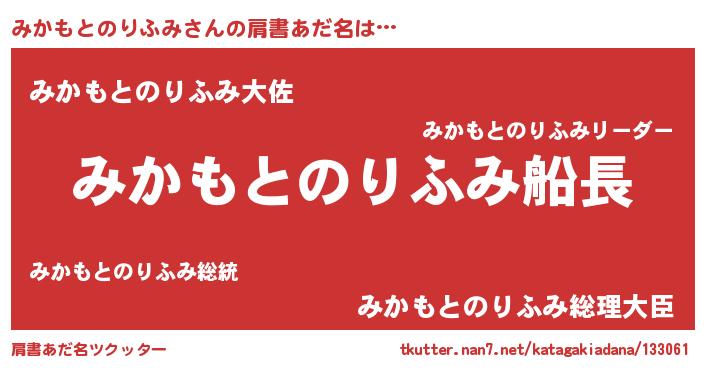 | 欧米人風あだ名 | 『みかもとのりふみ・ステッグマイヤー』 |