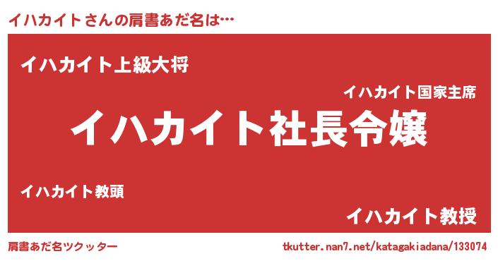 | 女子向けラノベタイトル風あだ名 | 『イハカイト姫と円卓の騎士』 |