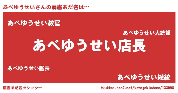 | 男性向けラノベタイトル風あだ名 | 『あべゆうせいの憂鬱』 |