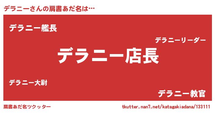 | 男性向けラノベタイトル風あだ名 | 『デラニーの憂鬱』『デラニースレイヤー』 |