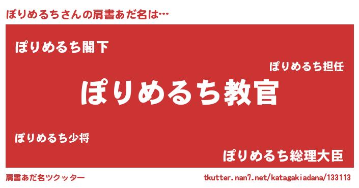 | 男性向けラノベタイトル風あだ名 | 『この素晴らしい世界にぽりめるちを!』 |