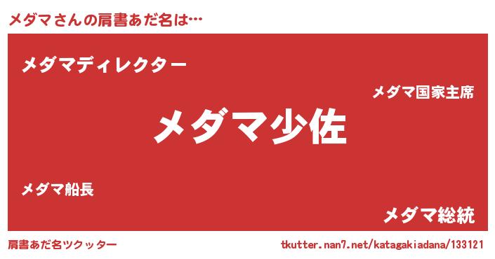 | ヒーロー風カッコイイあだ名 | 『ウルトラ戦士メダマ』『ネオメダマ』 |