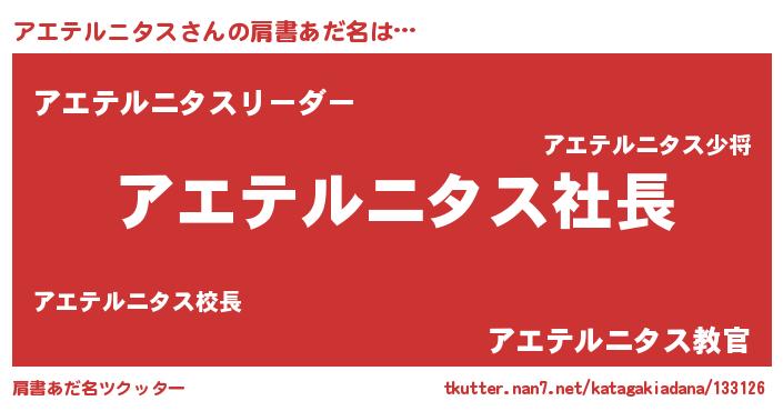 | 自動車の名前っぽいあだ名 | 『アエティマ』『アルトエパン』 |