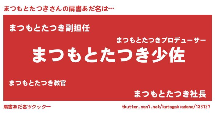 | ヒーロー風カッコイイあだ名 | 『ネオマツモトタツキ』『仮面マツダー』 |