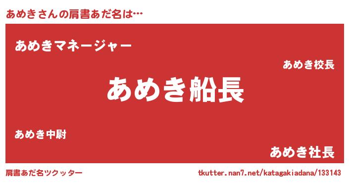 | 男性向けラノベタイトル風あだ名 | 『緋弾のアメキ』『はたらくあめきさま!』 |