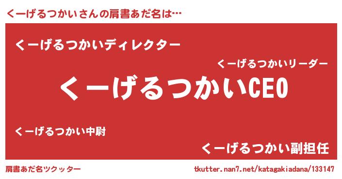 | ヘコむあだ名 | 『くーふぇ~』『くーげるつかい(爆)』 |