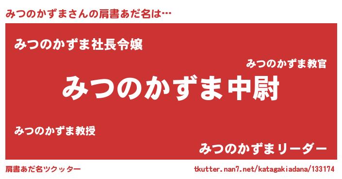 | 女子向けラノベタイトル風あだ名 | 『みつのかずまの玉の輿計画!』 |