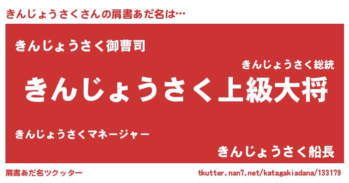| ヒーロー風カッコイイあだ名 | 『スーパーキンジョウサク』 |