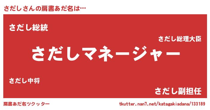 | 男性向けラノベタイトル風あだ名 | 『はたらくさだしさま!』 |