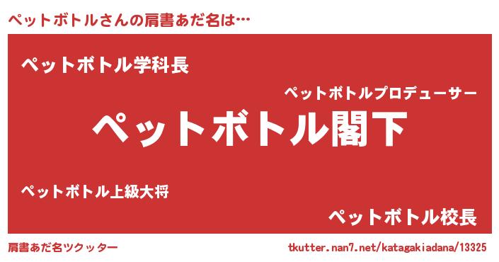 | 意味不明あだ名 | 『自称ペットボトル』 |
