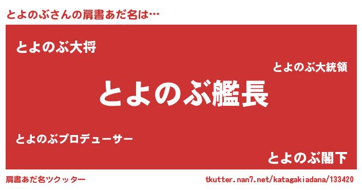 | 意味不明あだ名 | 『なめこ科とよのぶ属』『自称とよのぶ』 |