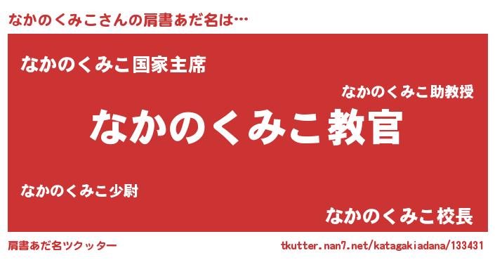 | 男性向けラノベタイトル風あだ名 | 『この素晴らしい世界になかのくみこを!』 |