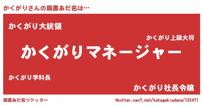 | 欧米人風あだ名 | 『アンジェラ・かくがり』 |