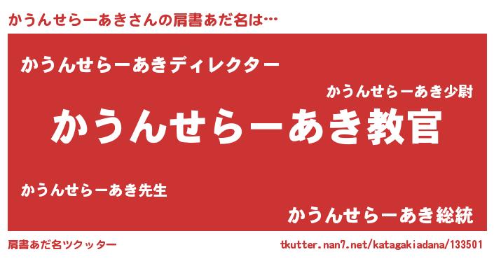 | 男性向けラノベタイトル風あだ名 | 『この素晴らしい世界にかうんせらーあきを!』 |
