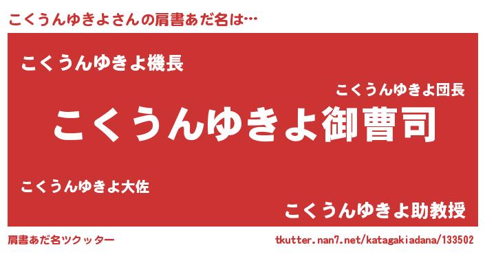 | 男性向けラノベタイトル風あだ名 | 『コクウンユキヨアートオンライン』 |