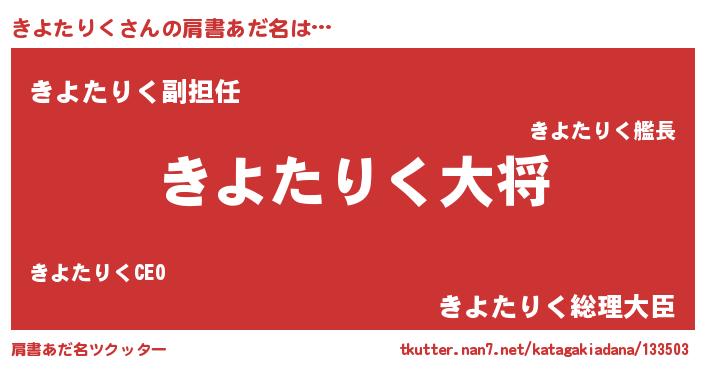 | 男性向けラノベタイトル風あだ名 | 『キヨタリクスレイヤー』 |