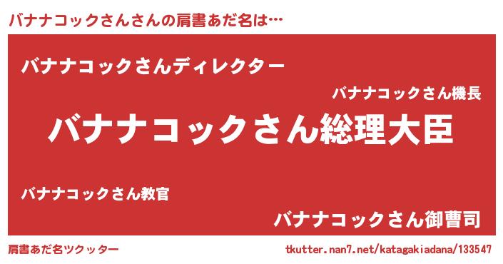 | 意味不明あだ名 | 『バナナコックさんフォーエバー』 |