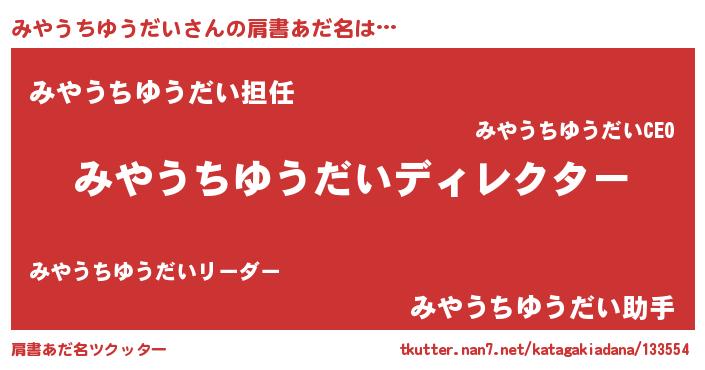 | ヒーロー風カッコイイあだ名 | 『ネオミヤウチユウダイ』『黄金騎士ミヤ』 |