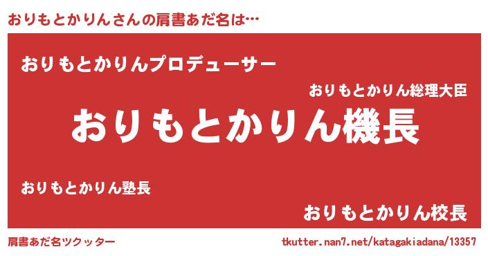 | ヘコむあだ名 | 『おりもとかりん(遠い目)』『豆乳』 |