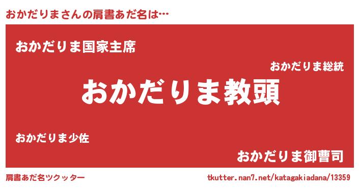 | 男性向けラノベタイトル風あだ名 | 『おかだりまという概念が存在しない退屈な世界 』 |
