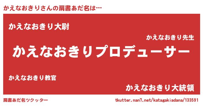 | 男性向けラノベタイトル風あだ名 | 『かえなおきりに滅ぼされるだけの簡単なお仕事です』 |