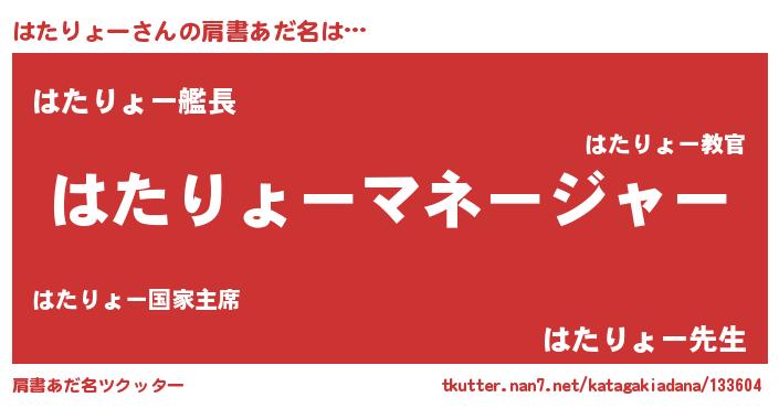 | 男性向けラノベタイトル風あだ名 | 『はたりょーに滅ぼされるだけの簡単なお仕事です』 |