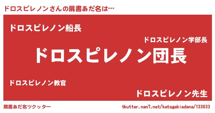 | 男性向けラノベタイトル風あだ名 | 『ダンジョンにドロスピレノンを求めるのは間違っているだろうか』 |