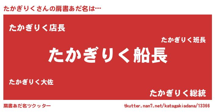 | 胡散臭い通販商品みたいなあだ名 | 『必ず成功するブレスレット…その名も「たかぎりく」』 |