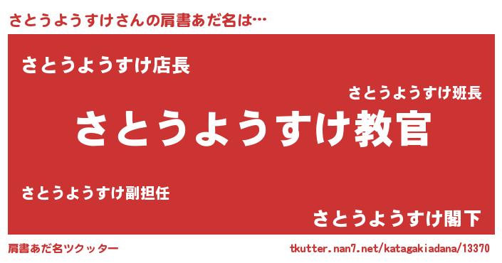| 男性向けラノベタイトル風あだ名 | 『この素晴らしい世界にさとうようすけを!』 |
