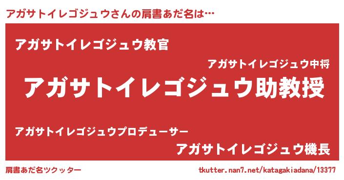 | 男性向けラノベタイトル風あだ名 | 『ノーゲーム・ノーアガサトイレゴジュウ』 |