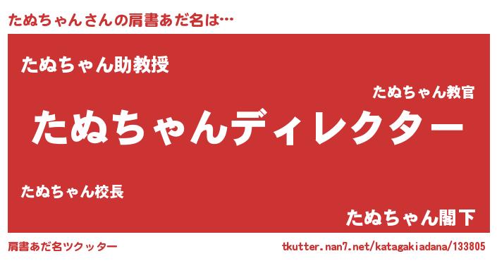 | ヒーロー風カッコイイあだ名 | 『天空の使者たぬちゃん』『仮面タヌダー』 |
