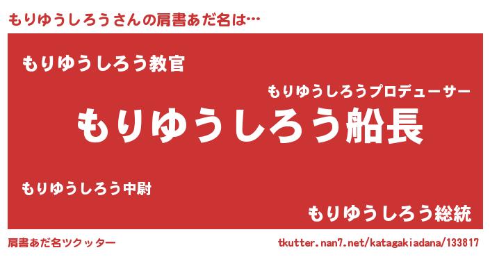 | 意味不明あだ名 | 『住所不定無職もりゆうしろう(2歳)』 |